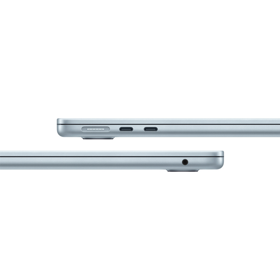 مکبوک ایر MC6T4 حالا با پورتهای Thunderbolt 4 در کنار درگاه MagSafe ارائه میشود که امکان اتصال همزمان دو نمایشگر 6K خارجی را فراهم میکند، در حالی که همچنان میتوانید از نمایشگر خود لپتاپ، کیبورد و ترکپد استفاده کنید. این ویژگی یک ارتقای مهم نسبت به مدل قبلی با تراشه M3 محسوب میشود، چرا که در مدل های پیشین، برای استفاده از دو نمایشگر خارجی، باید درب لپتاپ بسته میشد. علاوه بر این، مثل همیشه، یک جک هدفون هم در سمت دیگر دستگاه قرار دارد که تغییری نسبت به نسلهای قبل نکرده است.